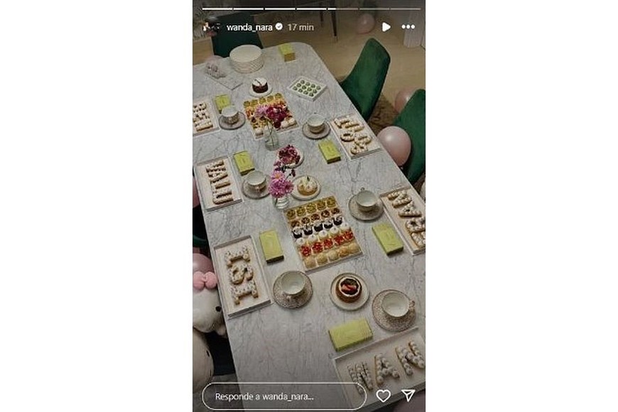 Wanda esperó a Francesca e Isabella con una mesa dulce, de la que también participaron sus hijos varones.