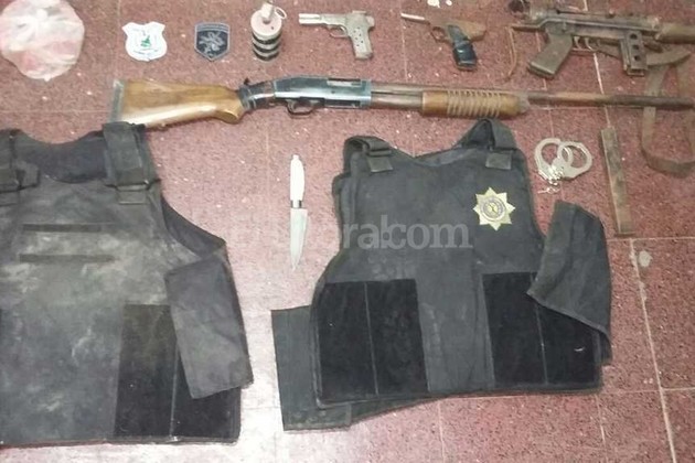 Según se supo, en su huída los sospechosos ingresaron a una vivienda de la mencionada zona. Los oficiales cercaron el lugar y luego ingresaron al domicilio. Una vez en el interior se secuestró: una pistola calibre .635 con cargador; una pistola calibre .22 con numeración adulterada; ametralladora automática calibre 9mm con cargador de 30 proyectiles; granada de mano lacrimógena; escopeta marca calibre .12,70; y dos chalecos antibala.