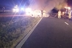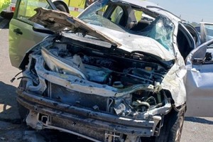 Tras el fortísimo impacto, el vehículo menor quedó cruzado en el carril lento del mencionado camino, mientras que el camión se corrió hacia la banquina. El Chevrolet terminó literalmente destruido en toda su parte frontal y muy dañado en general.