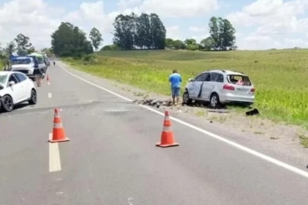 La Policía Federal de Carreteras (PRF) informó que el choque ocurrió cuando un Volkswagen Spacefox que se dirigía desde la frontera hacia la costa invadió el carril contrario y chocó de frente con un Ford Focus.