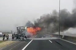 Video: camión en llamas provocó corte total en la autopista Buenos Aires-La PlataTraslado urgente y estado crítico