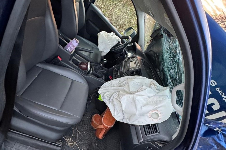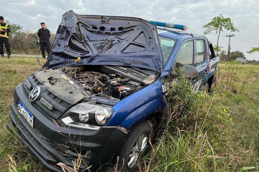 Fortuitamente, a pesar del fortísimo impacto que provocó daños en el capot y motor de la pick up, el oficial Juan Fisch y la suboficial Yamila Mignone que iban en el habitáculo no sufrieron lesiones.