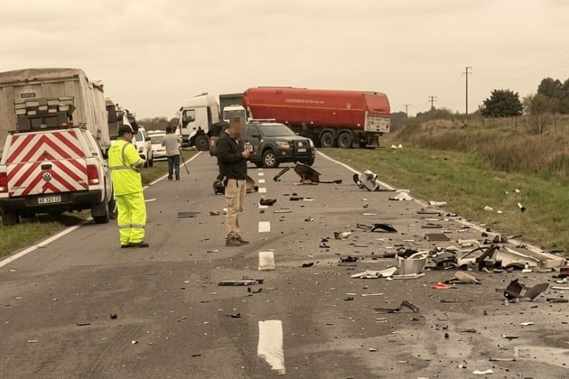 Tras el siniestro, la ruta provincial 14 permanecía completamente cortada en ambos sentidos, mientras trabajaban en el lugar peritos y personal de emergencia.