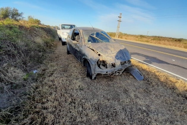 Este sábado por la mañana tuvo lugar un accidente de tránsito que derivó en el vuelco de un automóvil Sedan color negro a la altura de Santa Rosa de Calchines.