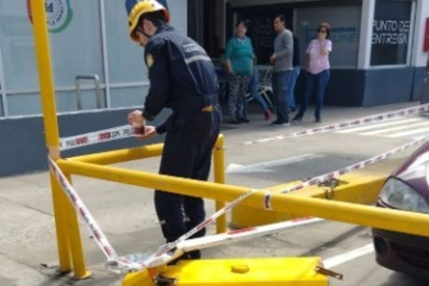 El siniestro se originó cuando un automóvil Volkswagen Gol, de color gris oscuro, conducido por Norma, de 73 años, que salía del estacionamiento del supermercado de Casey y Maipú perdió el control del mismo y terminó en la vereda opuesta, sobre un shopping de la zona.