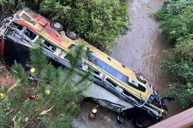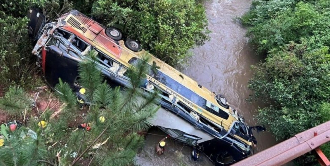 Como consecuencia del violento impacto, el ómnibus perdió el control, atravesó el guardarraíl del puente y cayó al cauce del arroyo Yazá, a varios metros de profundidad.