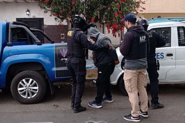 En el primero de los sitios allanados se procedió a la detención de un oficial de la AIC de 45 años, cuyas iniciales son V.A.M., quien se encontraba en situación de disponibilidad. Allí también fue apresado su hijo de 22 años (G.A.M.).
