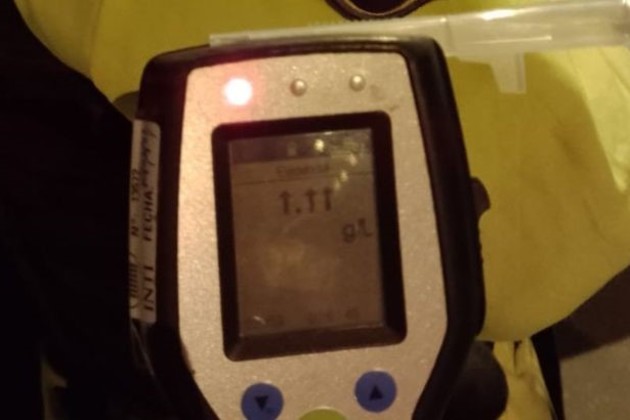 Según reportó la Agencia Provincial de Seguridad Vial, el alcoholímetro no pudo arrojar cifras precisas porque la medición del conductor superó los 3 gramos de alcohol por litro. En estos casos, el artefacto muestra tres flechas para indicar que se superó ese nivel.