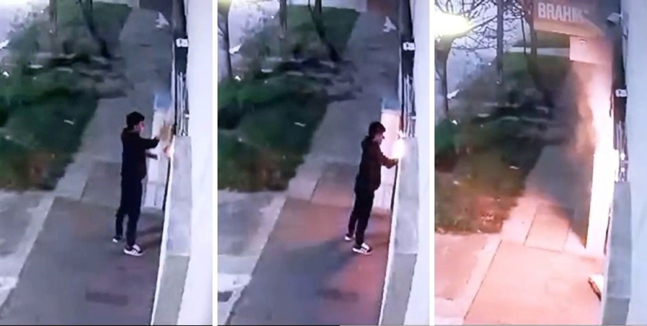En el video se observa a un hombre joven que se acerca hasta la ventana de un inmueble ubicado en Espora al 2200 enciende un trapo o un elemento similar y lo introduce dentro de la propiedad, para luego escapar corriendo.