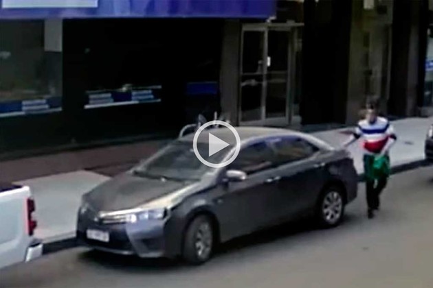 La secuencia se inició minutos después de las 11,30 cuando la mujer estacionó su Toyota Corolla sobre calle Tucumán, unos metros antes de llegar al cruce con Rivadavia.