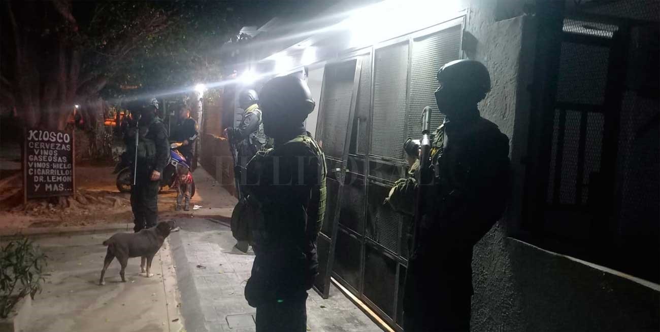 Cerca de medio centenar de policías arribaron minutos después de las 21, entre los que se encontraban agentes del Grupo de Operaciones Especiales (GOE); PDI; Ministerio de Seguridad y Justicia, Sección Perros y Bomberos Zapadores que acudieron con la morguera.