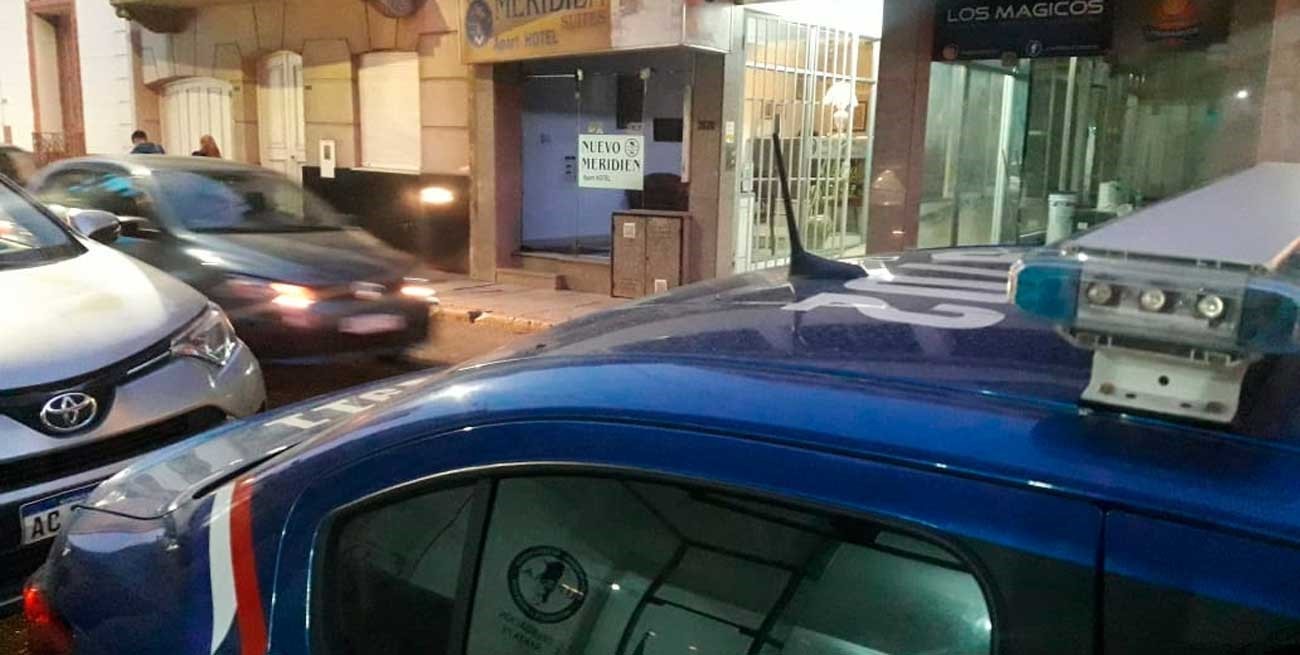 El procedimiento en el alojamiento llamado "Nuevo Meridien", ubicado en calle 25 de Mayo entre Eva Perón y La Rioja, fue pedido por la fiscalía que interviene en el caso. El objetivo fue dar con las pertenencias de los sujetos que cometían robos en vehículos utilizando inhibidores de señal.