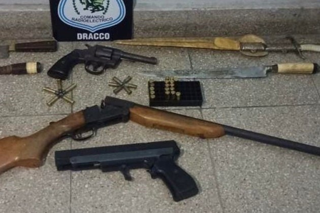 Una vez arribados al lugar, los actuantes divisaron a un sujeto que ingresaba a una finca presuntamente armado. Por lo cual, con las autorizaciones legales correspondientes los agentes entraron al lugar donde aprehendieron a un hombre de 39 años y secuestraron una escopeta calibre .24; un revólver calibre .38; una pistola de aire comprimido, cuatro armas blancas y varios cartuchos.