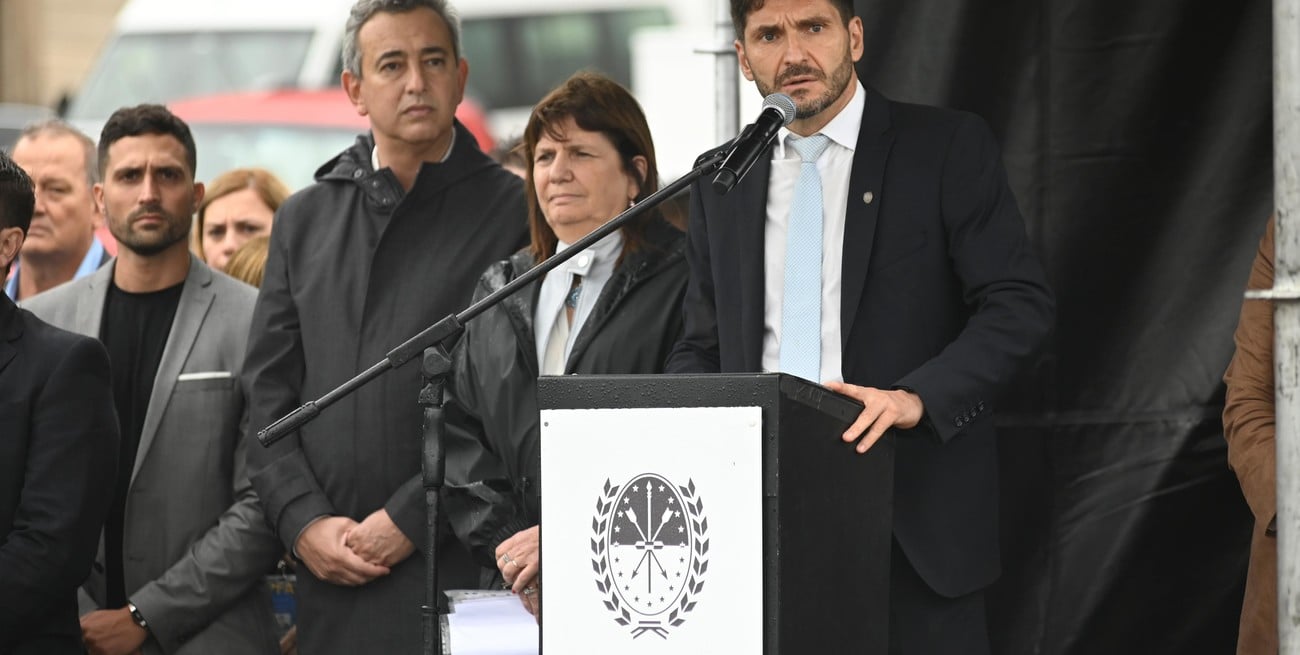 Maximiliano Pullaro junto a la ministra de Seguridad nacional Patricia Bullrich y el intendente de Rosario Pablo Javkin.