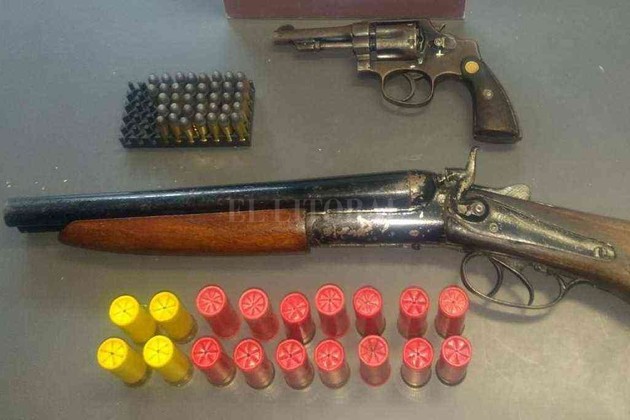 Constituidos en el lugar del hecho tomaron conocimiento de lo sucedido y lograron la aprehensión del requerido de 46 años, como así también el secuestro un revolver calibre 32 y una escopeta recortada cal 16.