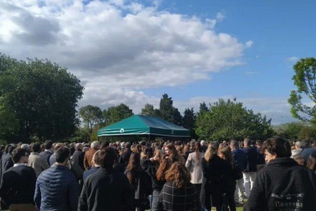 El acto fúnebre se lleva a cabo en el cementerio Jardín de Paz, ubicado a 32 kilómetros de Capital Federal en la colectora de la Panamericana camino a Pilar. En silla de ruedas, Magdalena de Elordy, la viuda de Blaquier, que también viajaba en la moto con Andrés, recibía los abrazos y condolencias que la familia, amigos y seres queridos le transmitieron para atravesar con fuerza el mal momento.