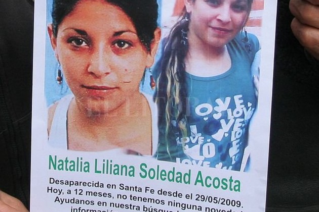 Natalia Liliana Soledad Acosta tenía 21 años cuando desapareció la madrugada del 29 de mayo de 2009 de la esquina de Suipacha y 25 de Mayo. La joven mujer vivía en Santo Tomé junto a su pareja, pero era prostituida en el microcentro de la capital. Natalia tiene la tez blanca, es morocha y usaba extensiones. La última vez que la vieron vestía un pantalón de jean claro, campera inflable y botas negras.