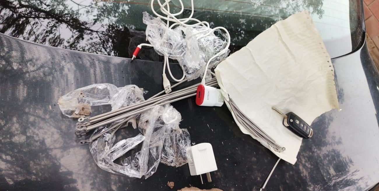 Los uniformados lo redujeron y al requisarlo se percataron de que llevaba consigo distintos envoltorios con cargadores de teléfonos, resistencias, un celular, chips de telefonía y un pendrive.