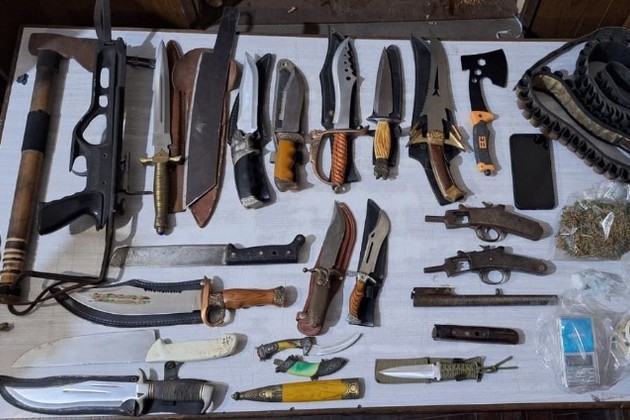 Ante semejante situación los efectivos irrumpieron y tras detener al sujeto de 35 años, secuestraron un pistolón desarmado, 20 armas blancas, cartuchos, una ballesta, y como si fuera poco una mínima cantidad de marihuana, un envoltorio con cocaína y un teléfono celular de interés para la causa.