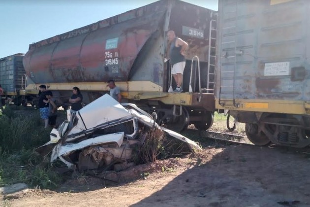 Un adolescente se salvó de milagro cuando el auto que manejaba fue embestido por un tren en Arocena, departamento San Jerónimo.