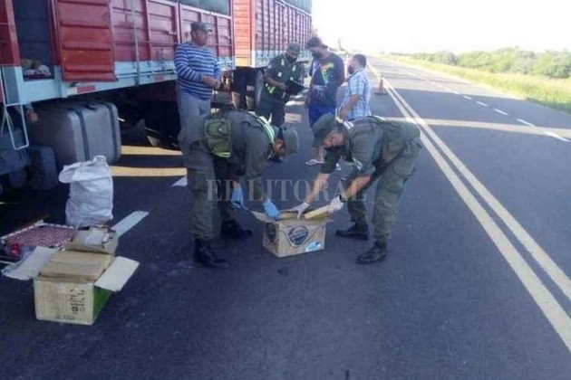 El camionero dijo que "las había cargado en Corrientes y que desconocía su contenido", pero los elementos de prueba en su contra eran demasiados a esa altura. Dentro de las cajas los gendarmes hallaron 55 paquetes rectangulares de diferentes tamaños, cuyo peso alcanzó los 47,490 kilos de marihuana. Además, se secuestraron dos celulares y 425 dólares.