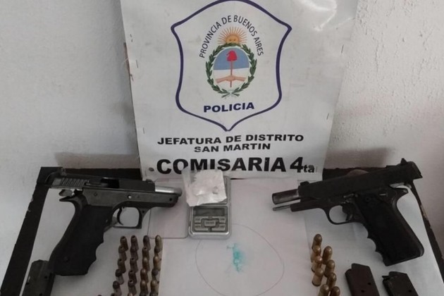 En el operativo, los policías secuestraron una pistola Ballester Molina calibre 11.25 con numeración suprimida y la inscripción de "Policía de la Provincia de Buenos Aires" y otra pistola Tanfoglio calibre 9 milímetros.