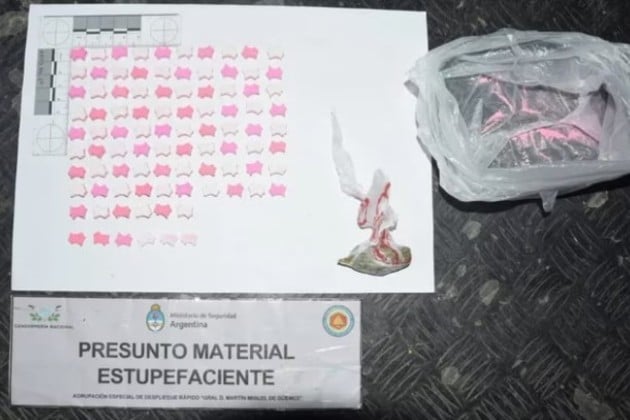 Gendarmería decomisó las 92 pastillas de éxtasis con el logo de Sprite, tres mil dólares y treinta mil pesos.