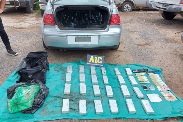Fueron detenidos en el momento los dos ocupantes del vehículo, un hombre de 44 años domiciliado en Paraná y otro de 45 oriundo de Santa Cruz. El primero de ellos ya tenía antecedentes por infracción a la ley nacional de estupefacientes. Concretamente, en Córdoba había sido atrapado en el año 2019 cuando llevaba media tonelada de marihuana oculta en las ruedas de un camión.