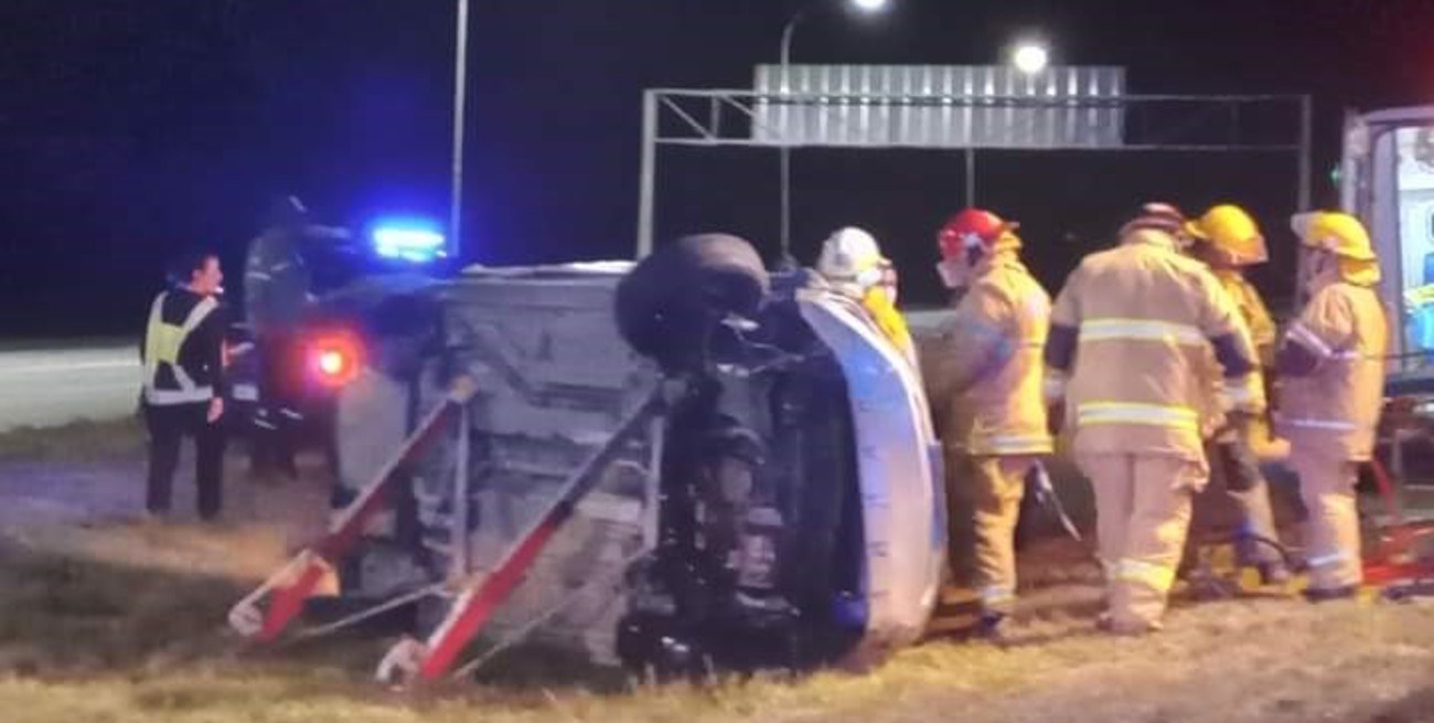 El choque por alcance tuvo lugar en el Km. 97 de la Autopista Rosario-Santa Fe mano sur norte, en jurisdicción de Arocena, Departamento San Jerónimo, y a partir de allí fue convocada la policía de la Unidad Regional XV, personal del SIES 107 y los Bomberos Voluntarios de Coronda, ya que los dos ocupantes del auto tumbado quedaron atrapados, uno de ellos en una más incómoda situación.
