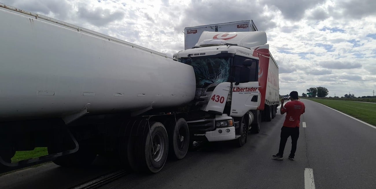 En este caso, según informó la policía, sobre la mano norte-sur, cerca de las 16 horas, se registró una colisión por alcance entre dos camiones, uno cargado con aceite crudo de girasol y el otro con pañales.