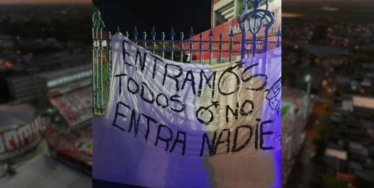 El "trapo" estaba colgado de una de las rejas del frente y advertía: "Entramos todos o no entra nadie". Como detalles, dos de las letras "o" del escrito eran dibujos de una bomba, tal cual se la conoce a la barrabrava "tatengue".