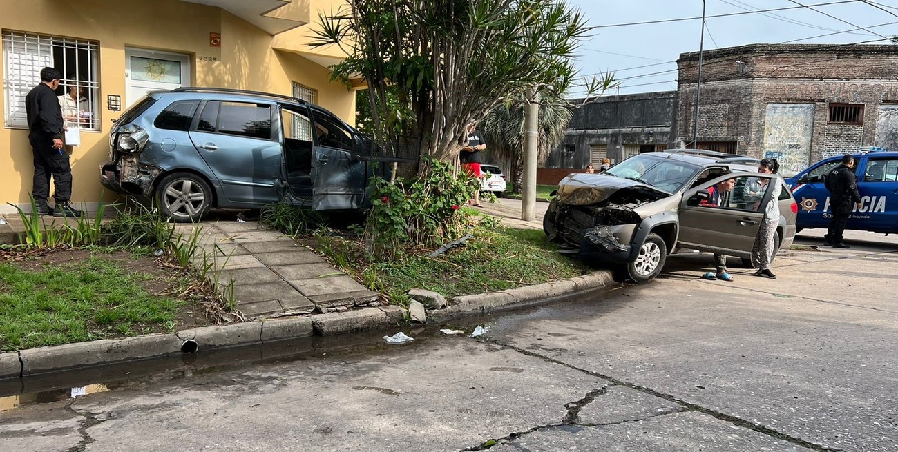 En el hecho se vieron involucrados un Fiat Palio y una VW Suran que, como consecuencia de la colisión, terminaron sobre la vereda de la ochava.