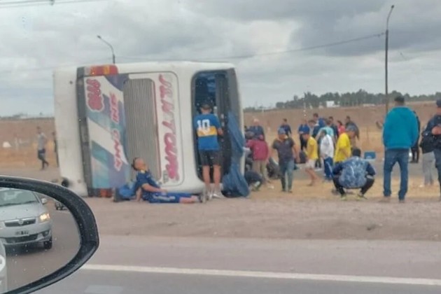 Volcó un micro que transportaba a hinchas de Boca a Mendoza para presenciar el partido de Copa Argentina. Una mujer falleció en el accidente y alrededor de 10 personas resultaron heridas.