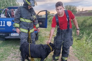 Bomberos Zapadores de Rafaela rescataron a un perro labrador que había caído en un canal de desagüe y no podía salir. El animal fue entregado sano y salvo a su dueña.