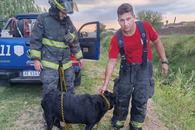 En la tarde del jueves, agentes del Cuartel Central de la Agrupación Bomberos Zapadores de Rafaela, dependiente de la Dirección General de Bomberos, fueron solicitados para poder rescatar a un perro labrador negro, quien había quedado accidentalmente dentro de un canal de desagüe a cielo abierto.
