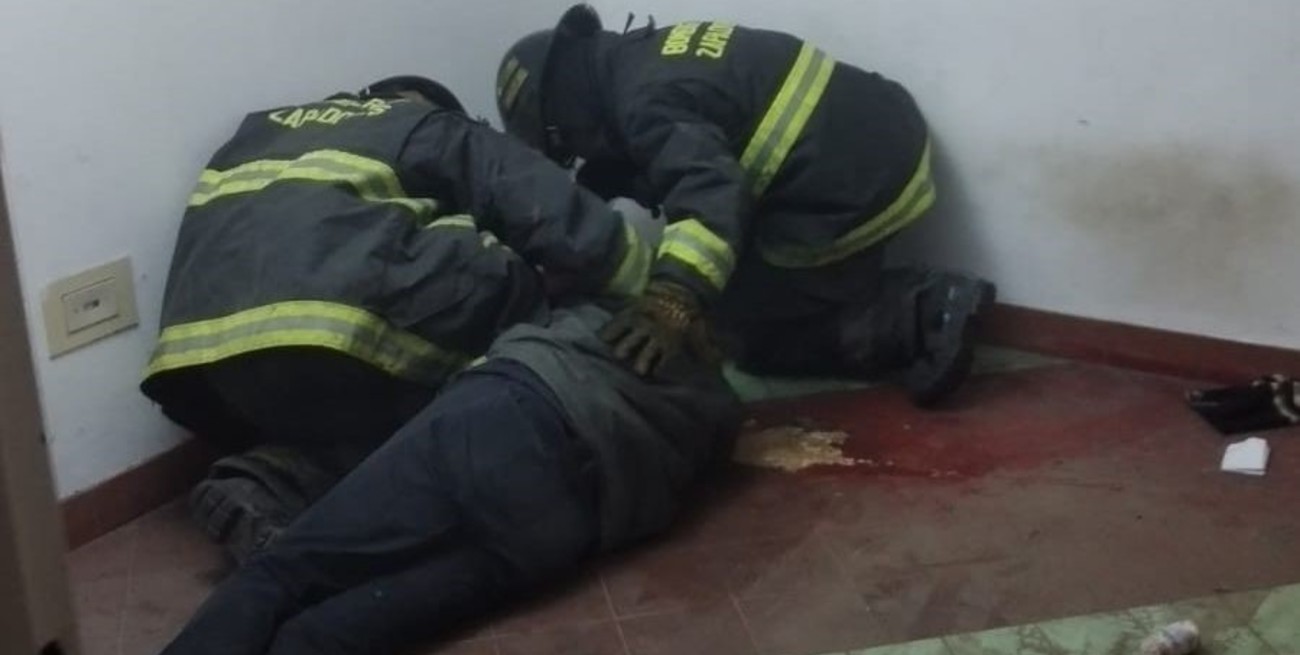 En el dormitorio, los bomberos encontraron a un hombre, recostado sobre un colchón de una plaza, en estado de semiinconsciencia.