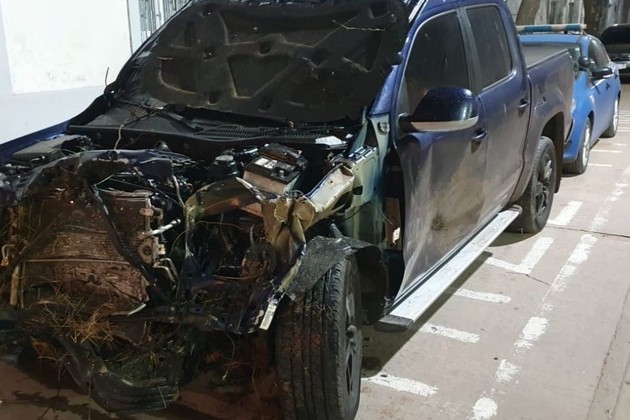 Al llegar al kilómetro 103.5, los agentes encontraron una camioneta Volkswagen Amarok, con las balizas encendidas y un impacto en la parte frontal, ubicada a unos 100 metros de la autopista, dentro de un campo en el cardinal este.