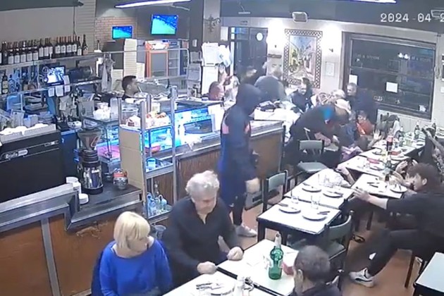 Según se observa por medio de las imágenes tomadas por las cámaras de seguridad, los ladrones entraron al comercio gastronómico a través de varias puertas de ingreso para sorprender.
