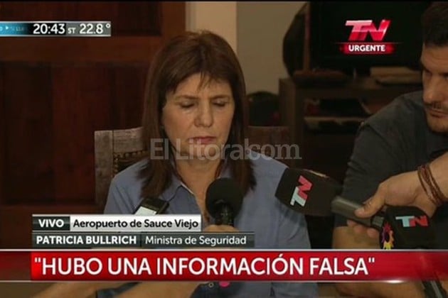 "Se ha detenido a uno de los tres delincuentes (...) Hubo una información falsa que llevó a pensar que tres eran los detenidos. Esto nos lleva a una investigación muy profunda, vamos a ir a fondo", dijo la ministra en conferencia de prensa desde el Aeropuerto de Sauce Viejo, en Santa Fe.