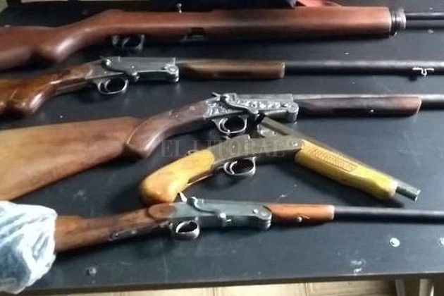 Este señor tenía en su poder un pistolón marca Rexio calibre 32; una pistola Mousser calibre 9mm; un revólver Casper Bagual calibre 22; un revólver Mousser calibre 7,65; una pistola automática marca Tala calibre 22; y tres escopetas: una Winchester calibre 12 de un solo caño, una Arca calibre 16, y otra Eibar calibre 16.
