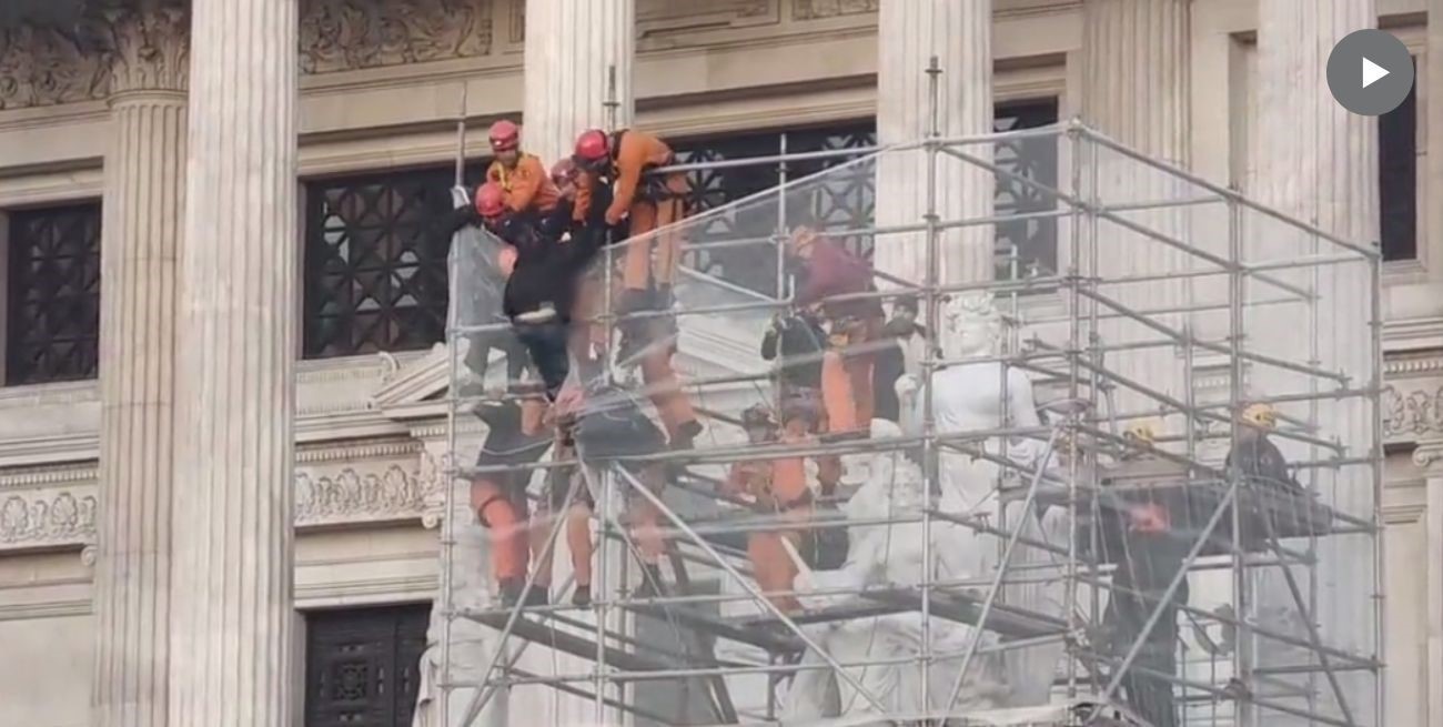 Minutos antes de las 7 de la mañana, un hombre se subió a un andamio que se encuentra instalado en el Congreso de la Nación en la ciudad de Buenos Aires, amenazando con arrojarse del mismo.