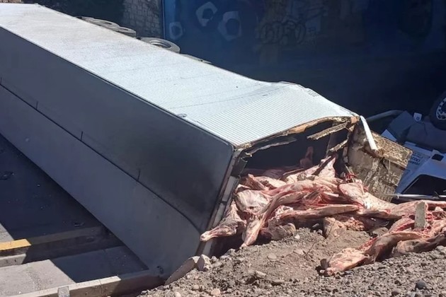 El conductor del transporte sufrió politraumatismos, pero no hubo víctimas fatales. De inmediato, la policía provincial montó un operativo para resguardar la zona y evitar que los vecinos se llevaran la carne.