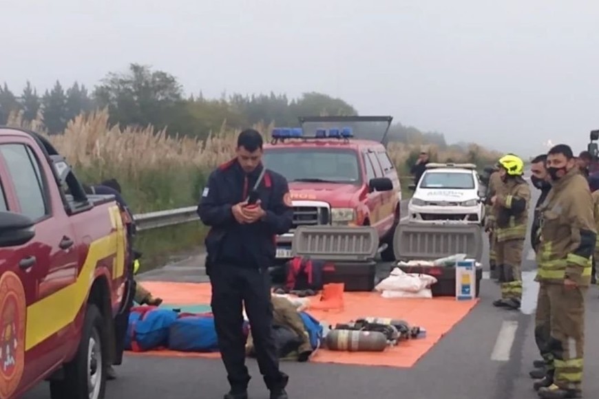El vuelco provocó el derrame de productos químicos sobre la calzada y la generación de una nube tóxica, por lo que Gendarmería y personal de la Policía Vial tuvieron que cortar el tránsito.