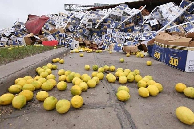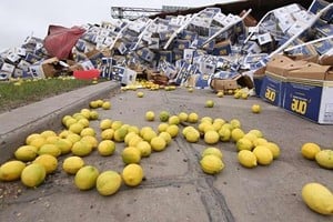 Un camión que transportaba 30 toneladas de limones volcó este viernes en la Circunvalación de Rosario y los vecinos tomaron parte de la mercadería, reportó la policía local.