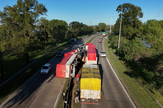Sin detalles sobre el incidente, el rodado pesado habría perdido el control, impactó contra el guardarrail central entre las dos manos y quedó volcado de costado en dicho lugar. Se trata de un vehículo que trasladaba naranjas desde Chajarí y tenía como destino el Mercado de Abastecedores de Santa Fe.