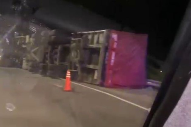 Un camión volcó este miércoles por la noche en el ingreso al peaje de la ciudad de Santo Tomé, a metros de la autopista Santa Fe - Rosario.