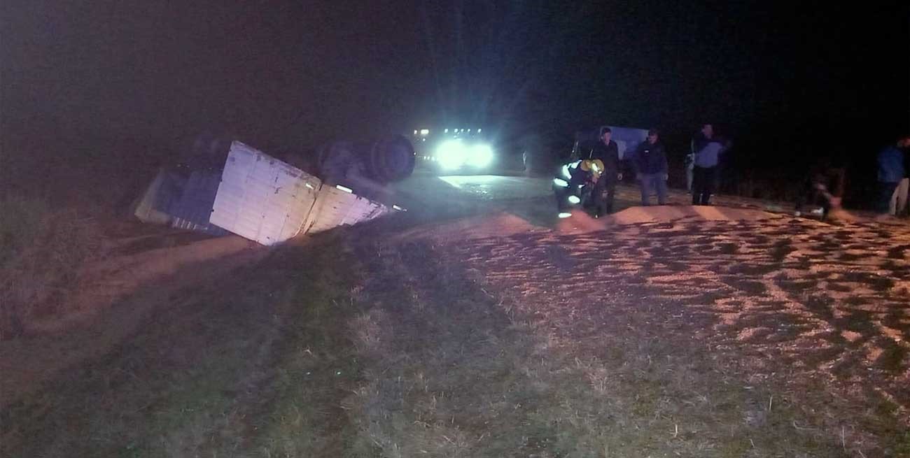 Un camionero resultó lesionado a poco de protagonizar un vuelco en un siniestro vial ocurrido durante la noche del martes en el cruce de las rutas provinciales 4 y 6, esto es, a la altura de Manucho.