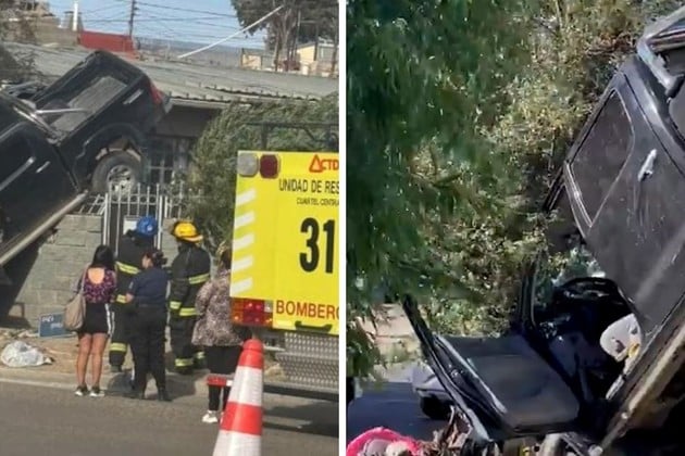 Una escena tan insólita como impactante alteró la tarde del lunes en Comodoro Rivadavia: una camioneta se despistó, rompió la reja de una vivienda y terminó apoyada sobre el portón, casi en vertical.