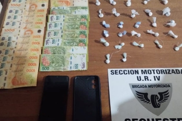 Efectivos de la Sección Motorizada de la Unidad Regional IV que cumplimentaban patrullajes preventivos y de seguridad por el cuadrante asignado por la Superioridad, acorde a directivas de la Jefatura de Policía, lograron incautar presuntos estupefacientes, una suma de pesos argentinos, una moto de 110 cc y celulares, además de aprehender a dos adultos, como resultado de una intervención concretada en la zona céntrica de la urbe casildense.