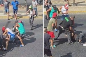 De acuerdo con la secuencia relatada, en un momento el acompañante de la utilitaria agredió al joven de 20 años, un tramo que no quedó captado en el video pero que agravó el conflicto. A partir de ahí, la situación escaló con rapidez y derivó en una pelea generalizada.